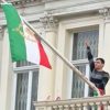 An anti-regime protester scaled the balcony of Iran’s Embassy in London on Friday and tore down the Islamic Republic’s flag, replacing it with Iran’s...